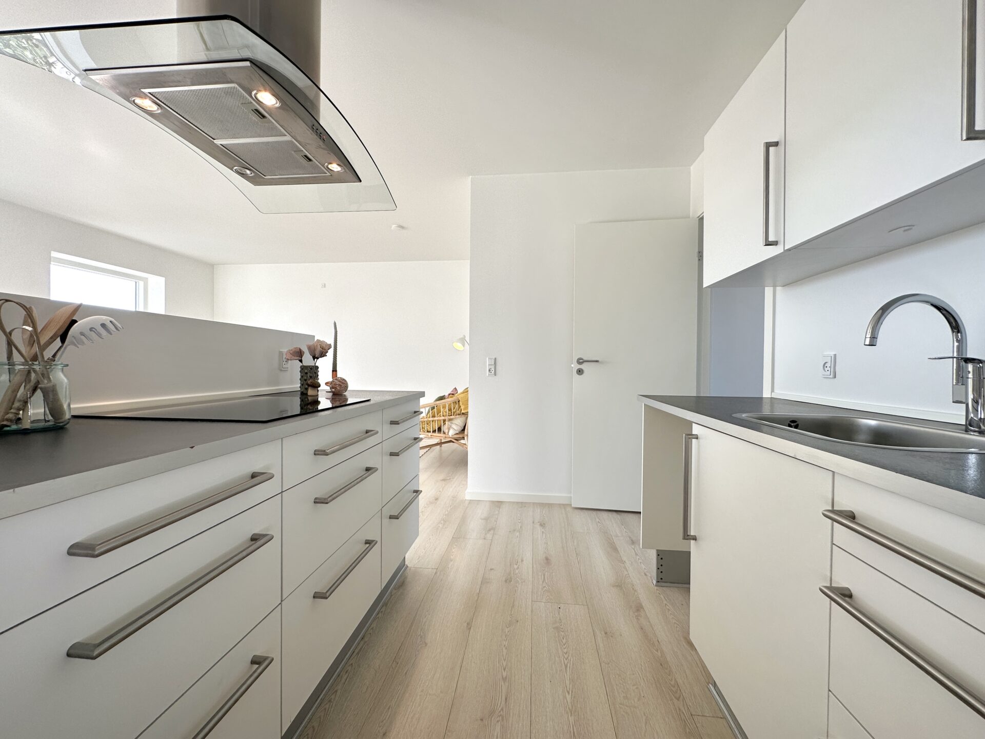 Især det store samtalekøkken med halvmur – der gør din madlavning til den rene teaterforestilling.