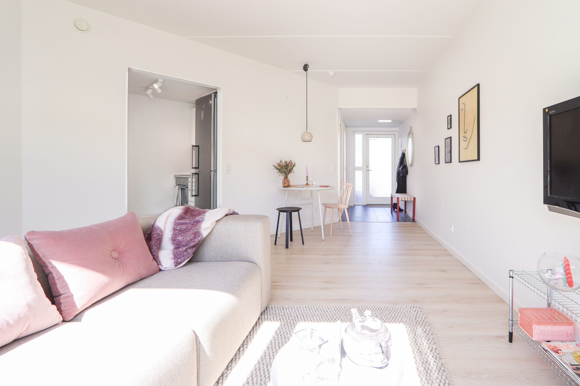 Super lysindfald i lejligheden. Den ligger i stueplan med egen mindre terrasse, så man kan sætte café møbler og grill ud om sommeren.