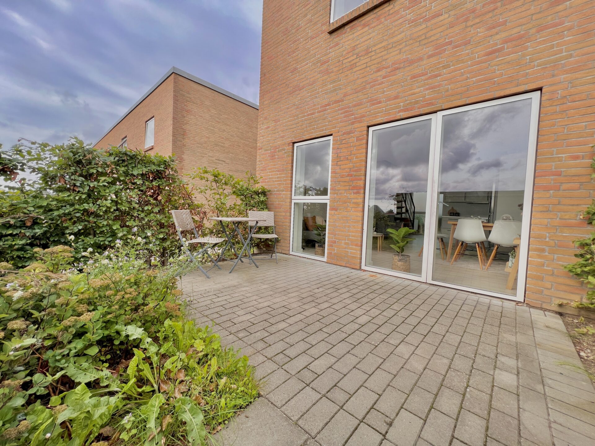 Til alle lejligheder tilhører en hyggelig terrasse.