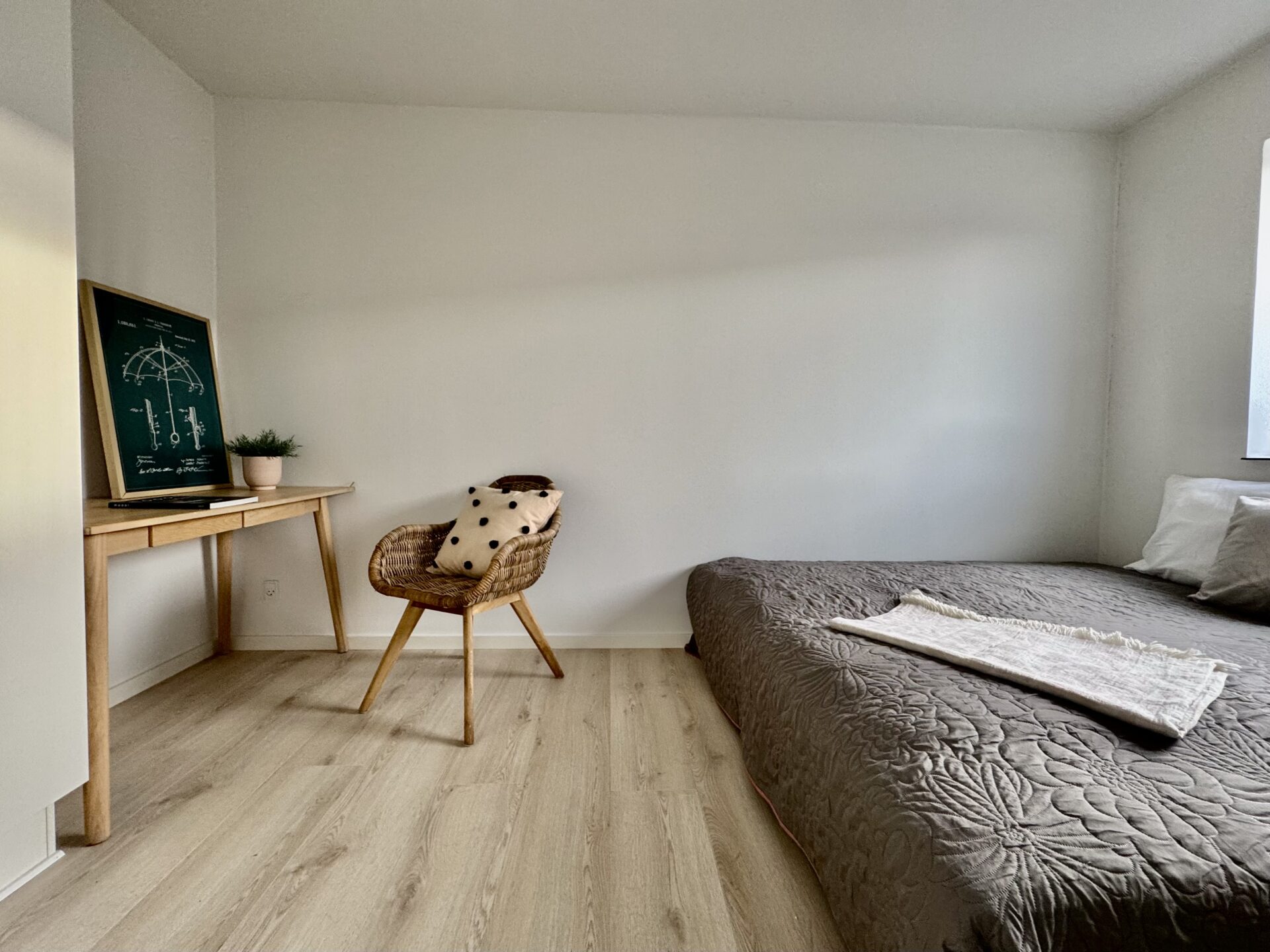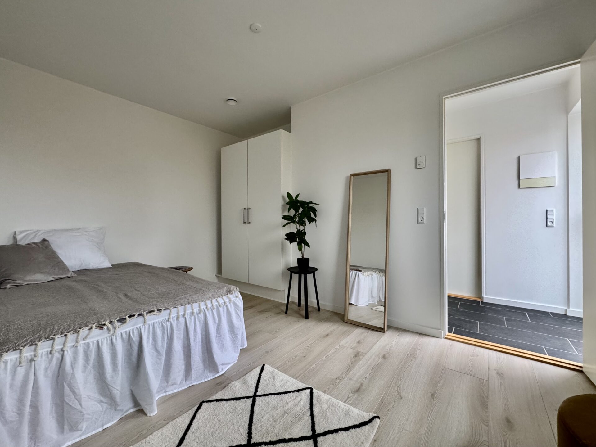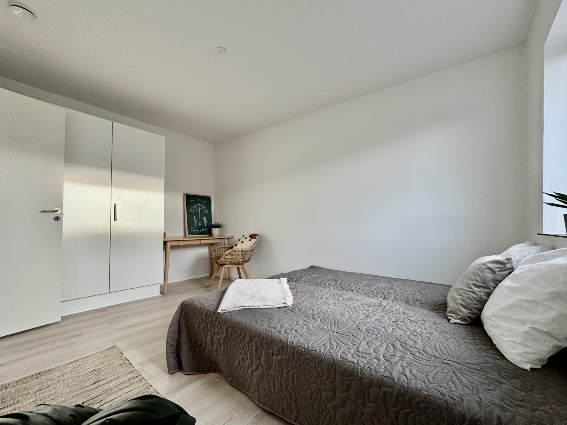 Begge værelser er store og meget nemme af indrette. Du får garderobeskabe på begge værelser.