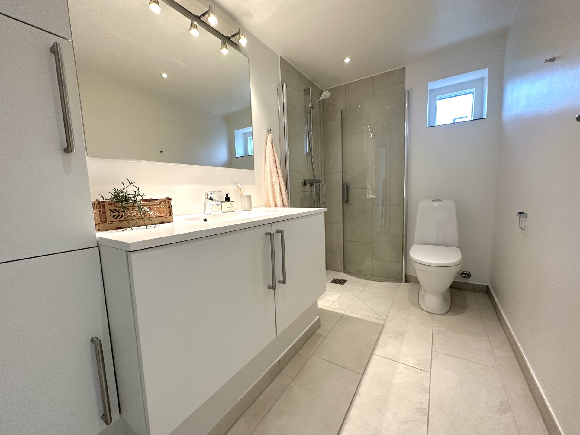 Det ene badeværelse har plads til installation af egen vaske-/tørremaskine.