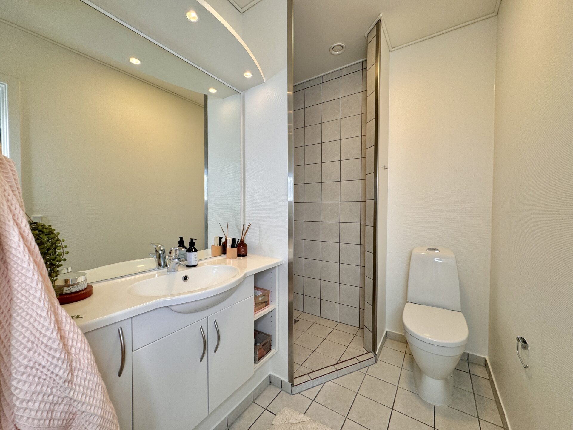 Du får to rigtig gode værelser, et stort badeværelse med stor bruseniche.