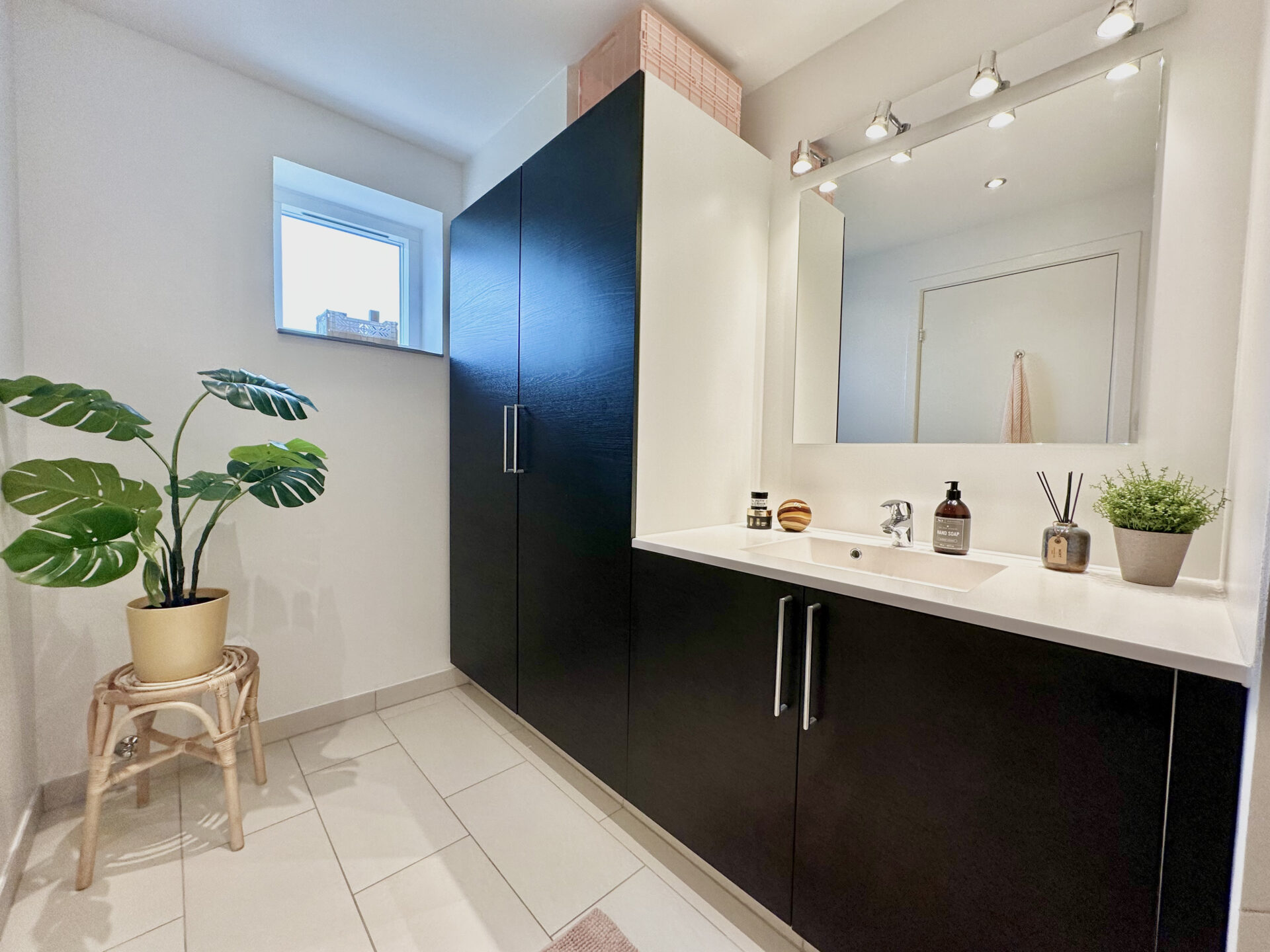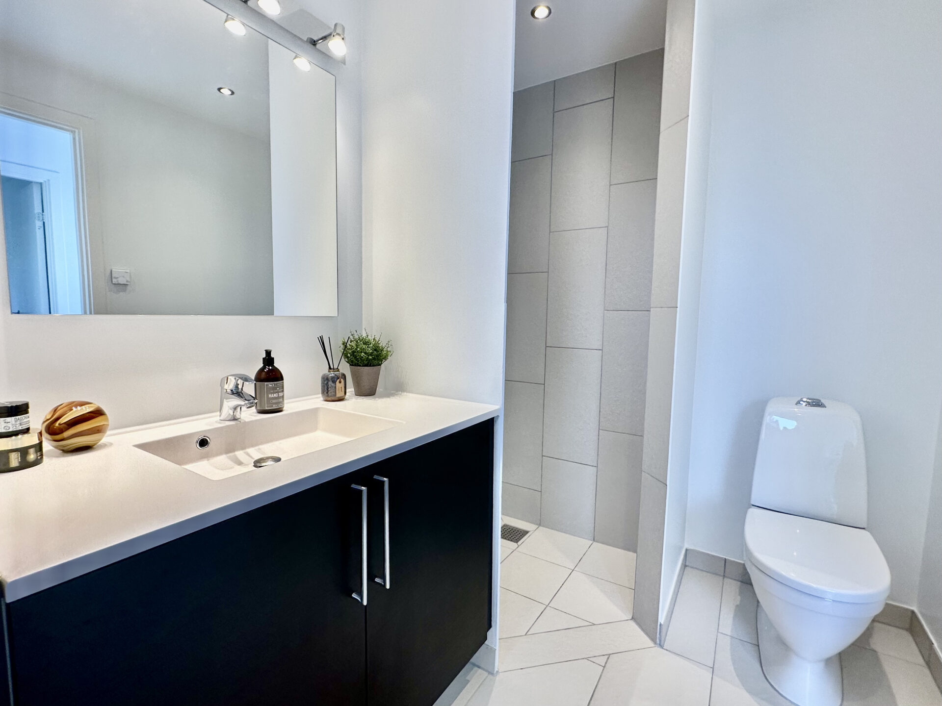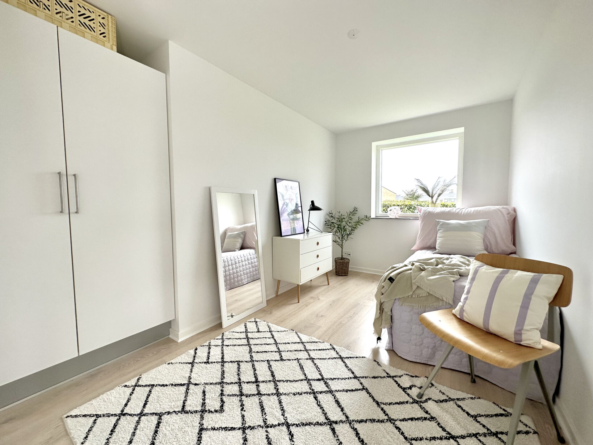 Rækkehuset har tre store værelser, stor stue og hele to badeværelser. Så her er ingen som skal slås om at komme først i badet om morgenen.