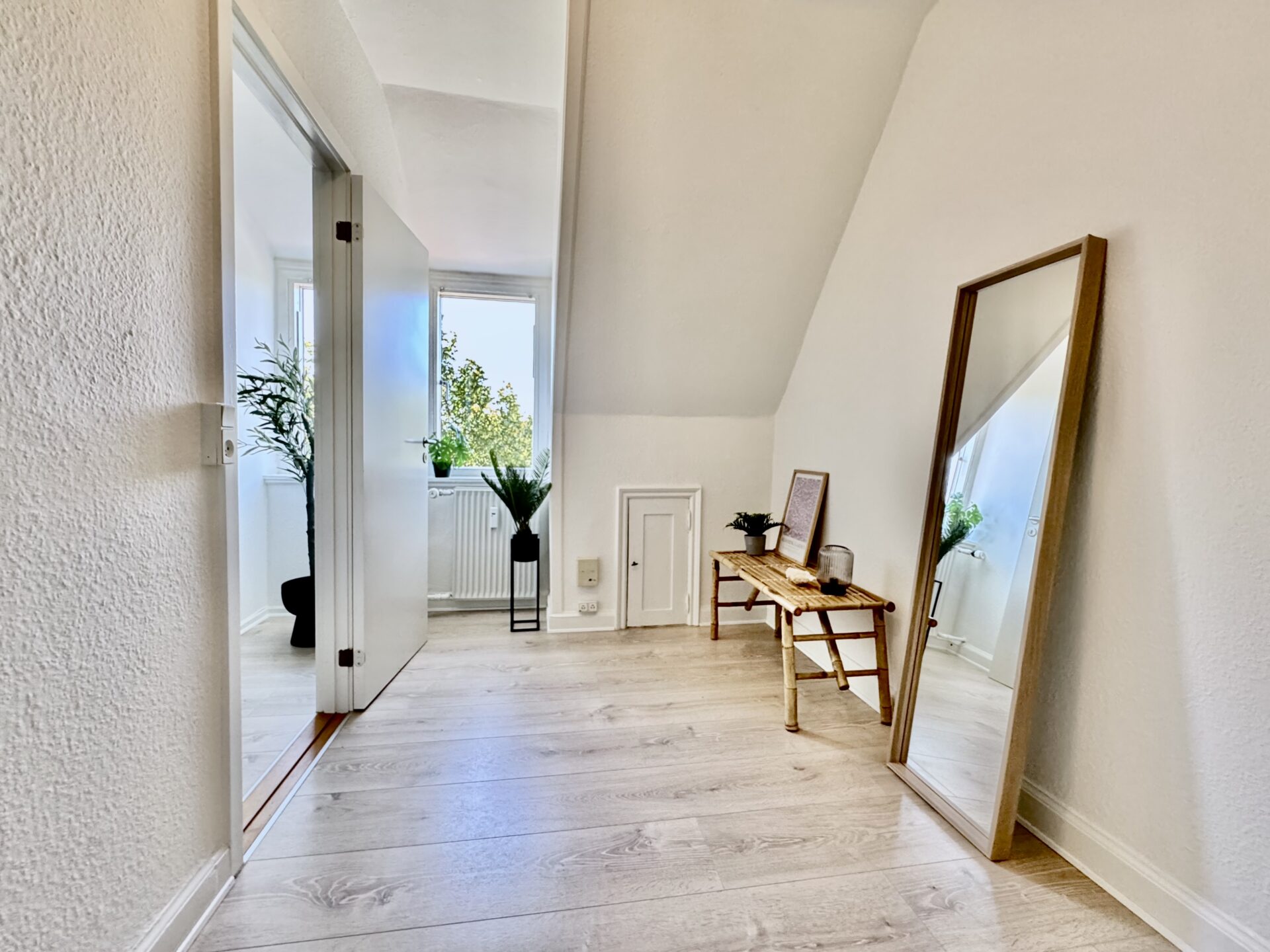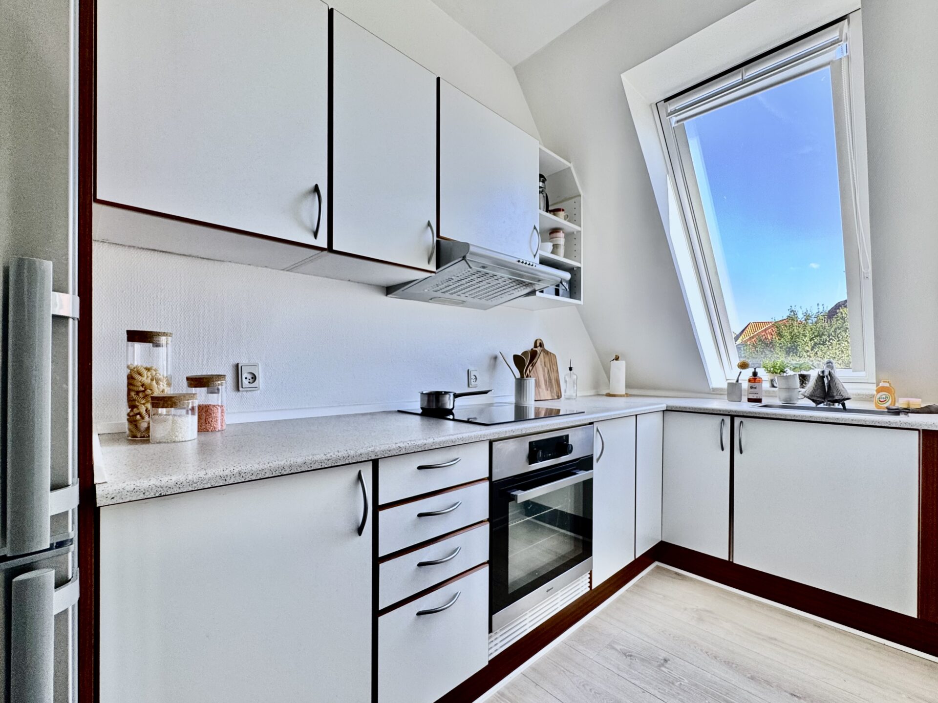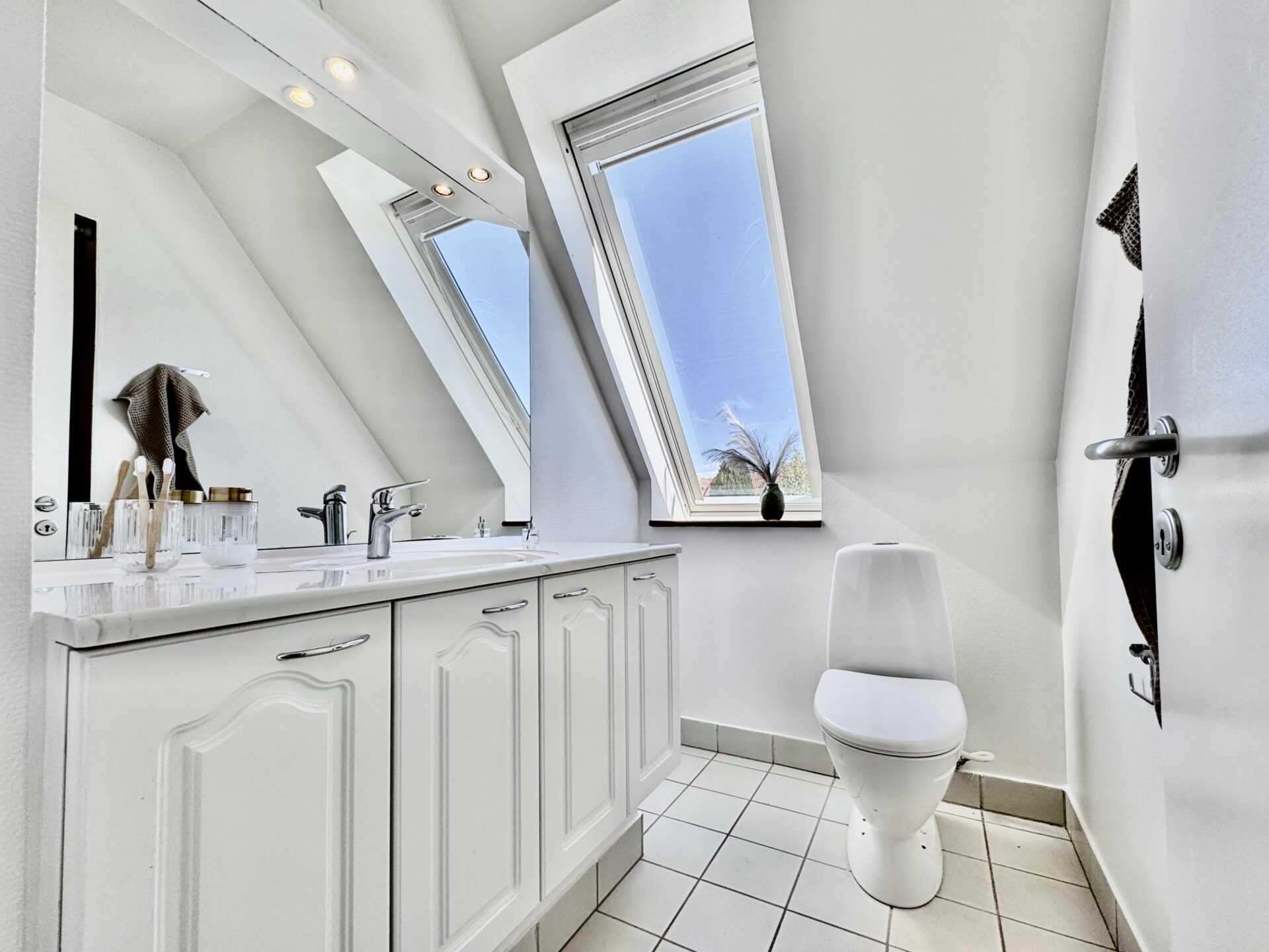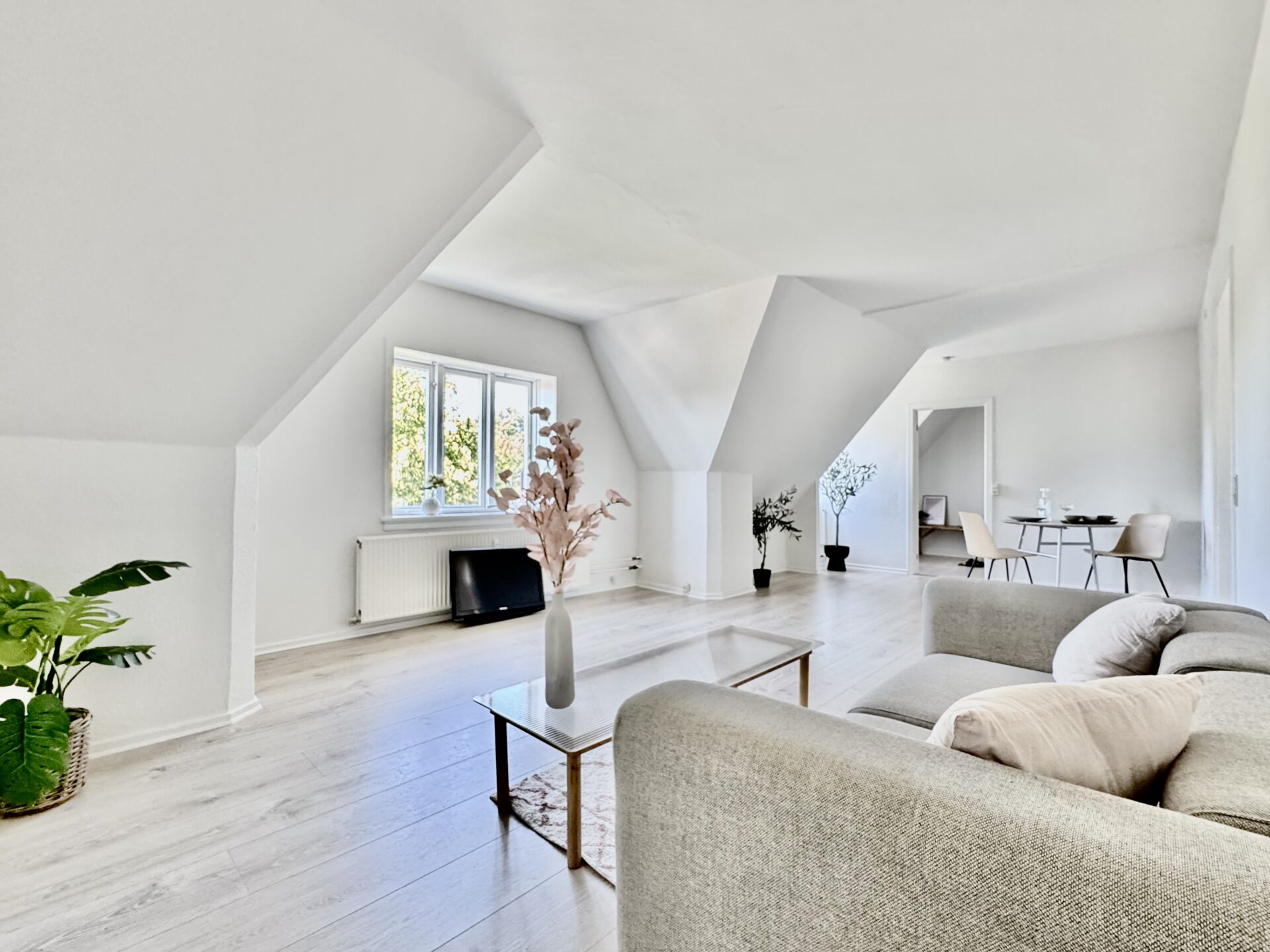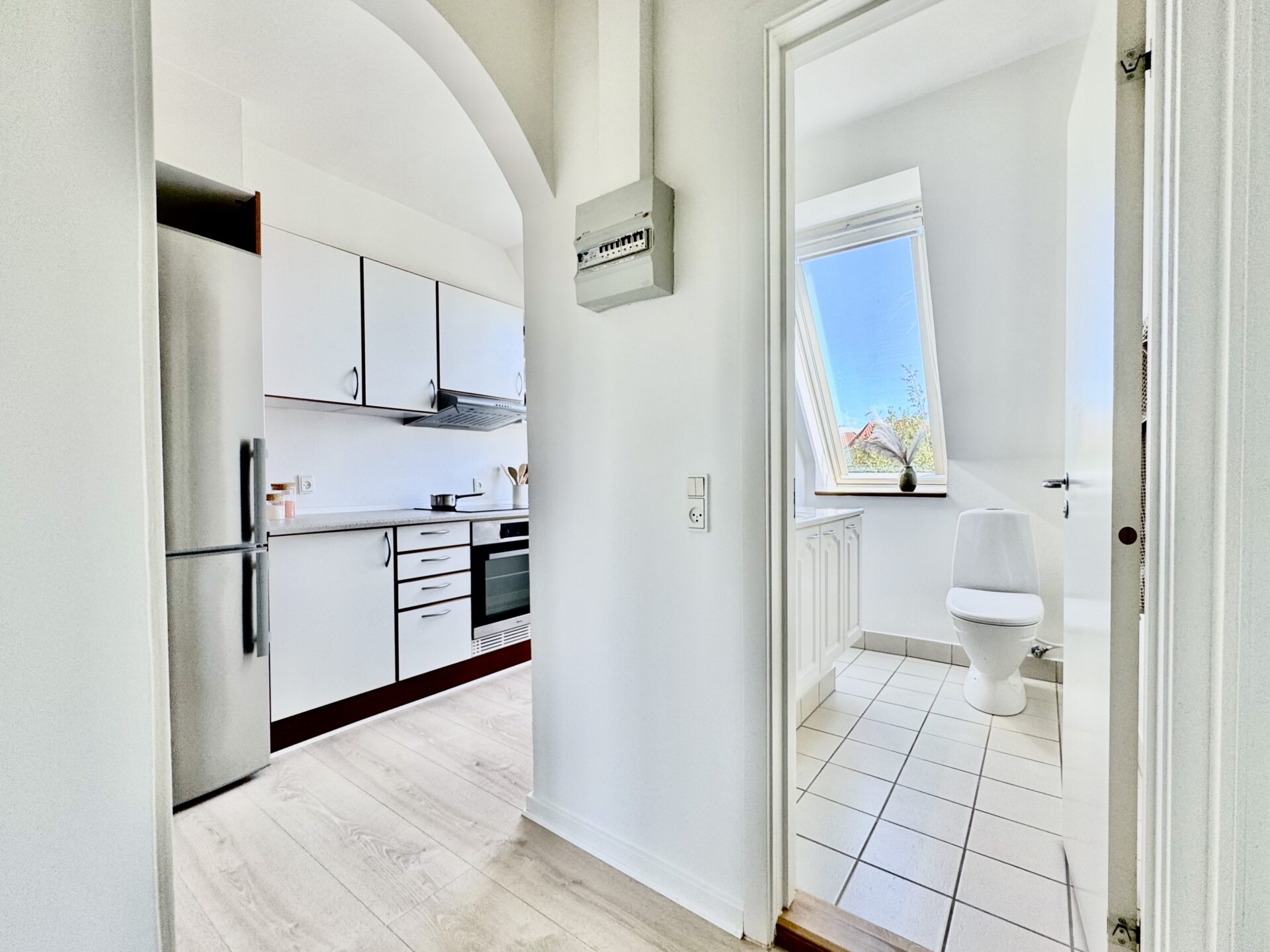 Du kommer til at bo på toppen, så ingen naboer til siden eller ovenover dig. Fra indgangsdøren kommer du ind i et mindre kontor – herfra videre ind i en dejlig stue med mange indretningsmuligheder.