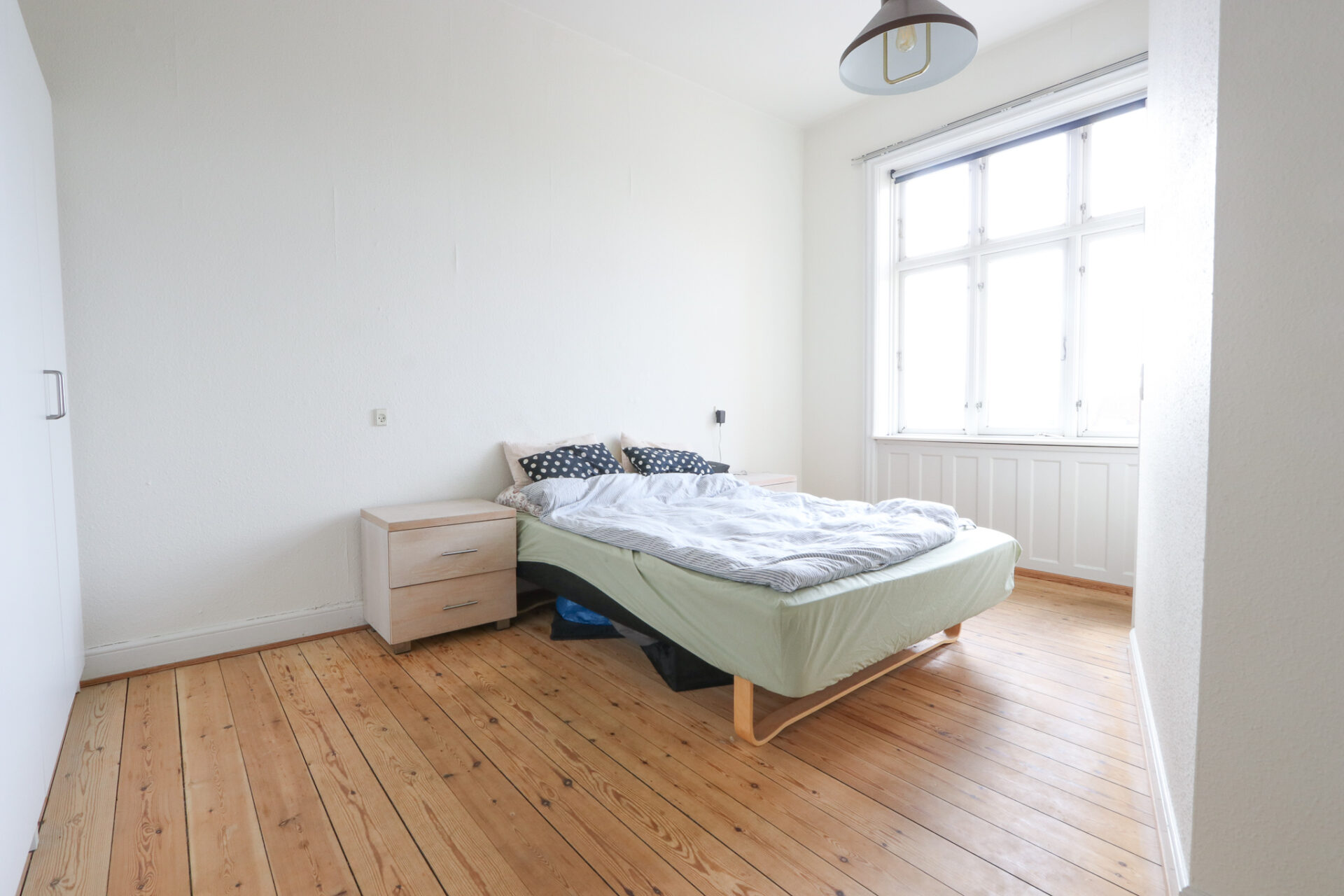 Et rummeligt og lyst soveværelse med god skabsplads.
