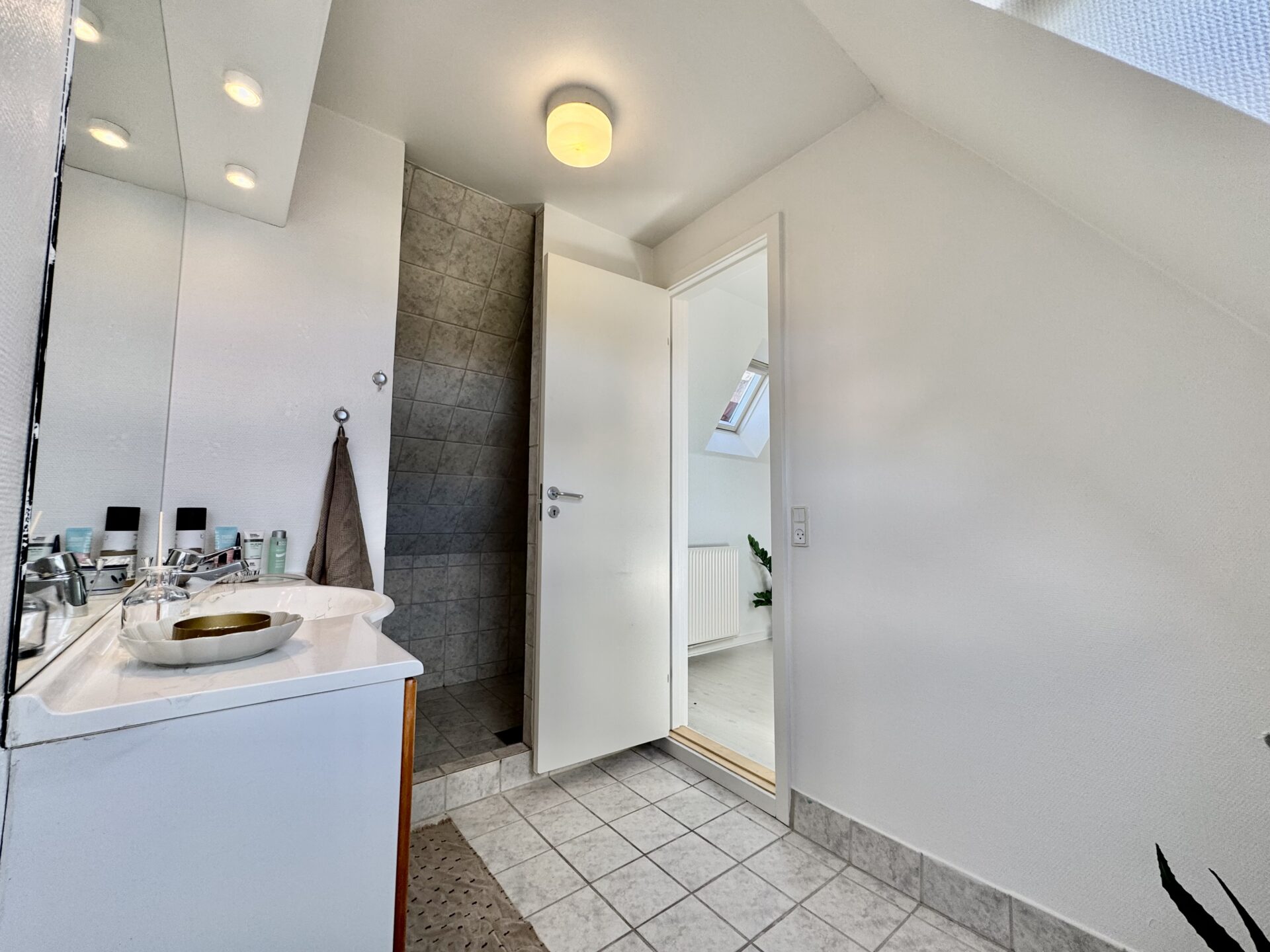 Du får to store soveværelser begge med faste skabe, et dejligt køkken, stort badeværelse med plads installation af egen vaskemaskine.