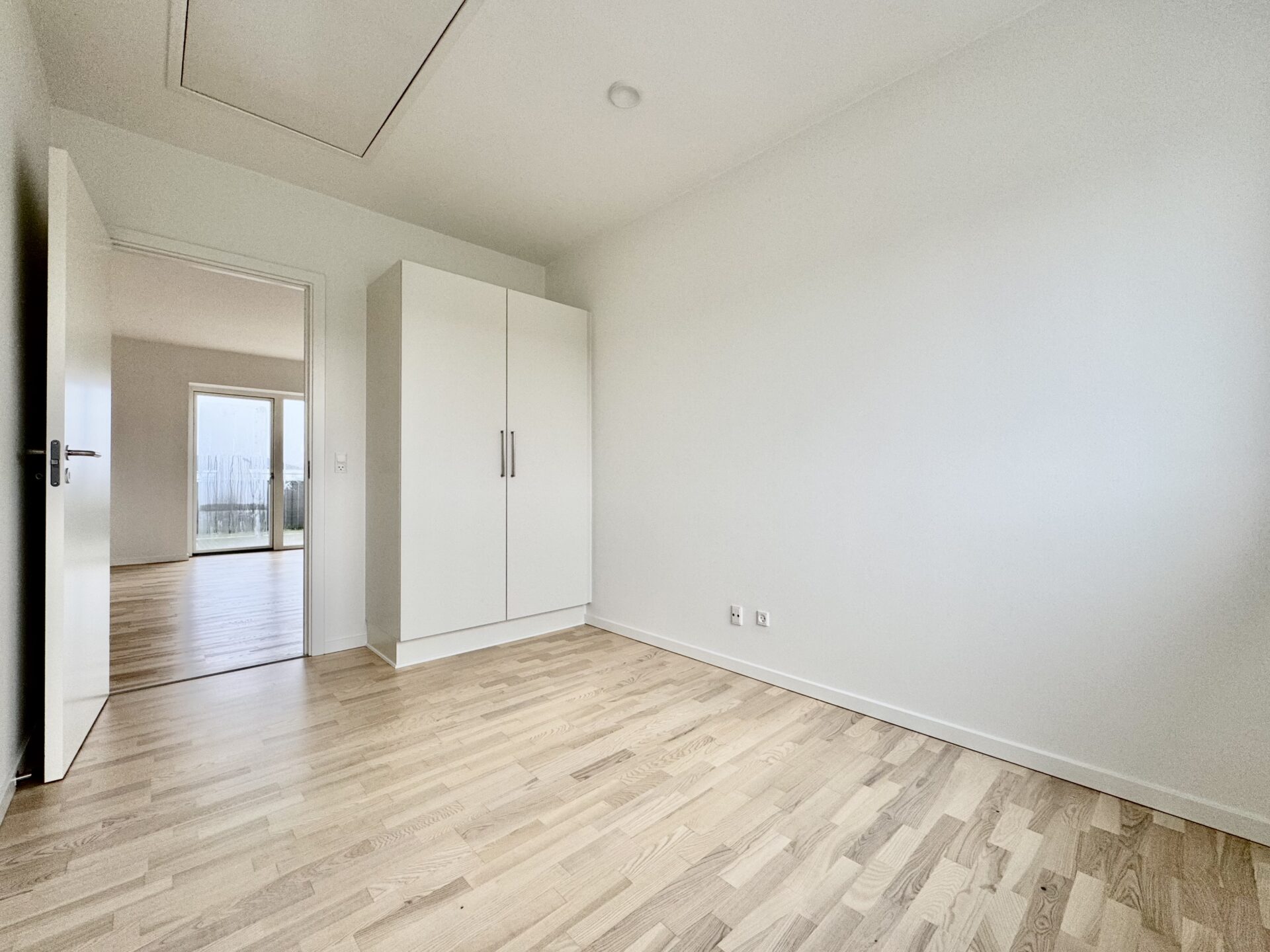 Der er tre gode værelser med faste skabe, der kan anvendes som soveværelse, børneværelse eller kontor.