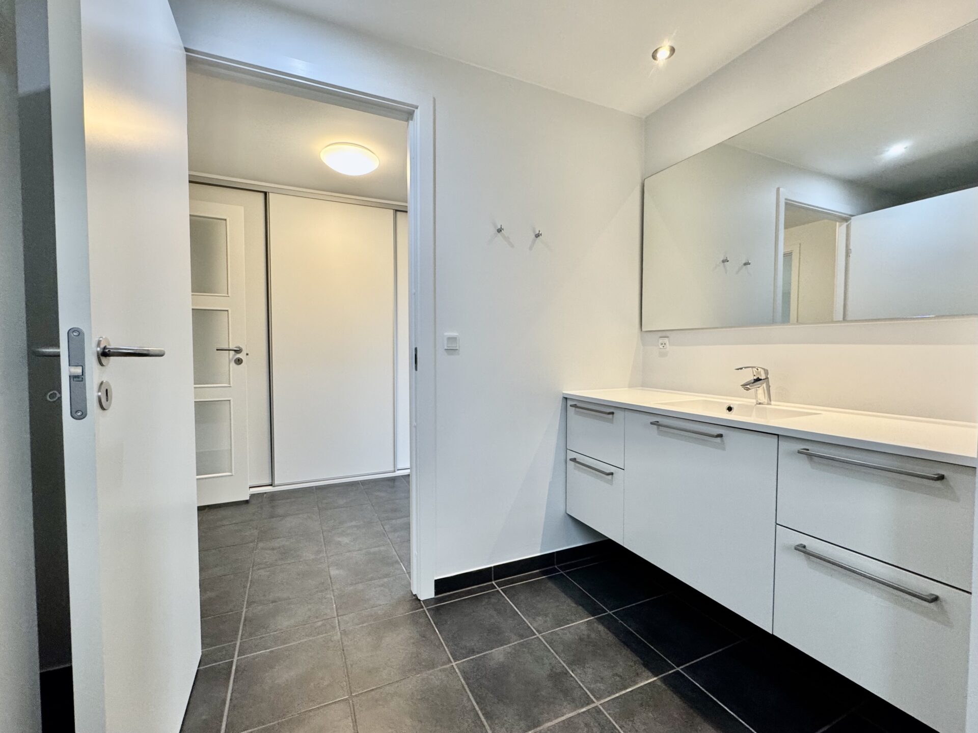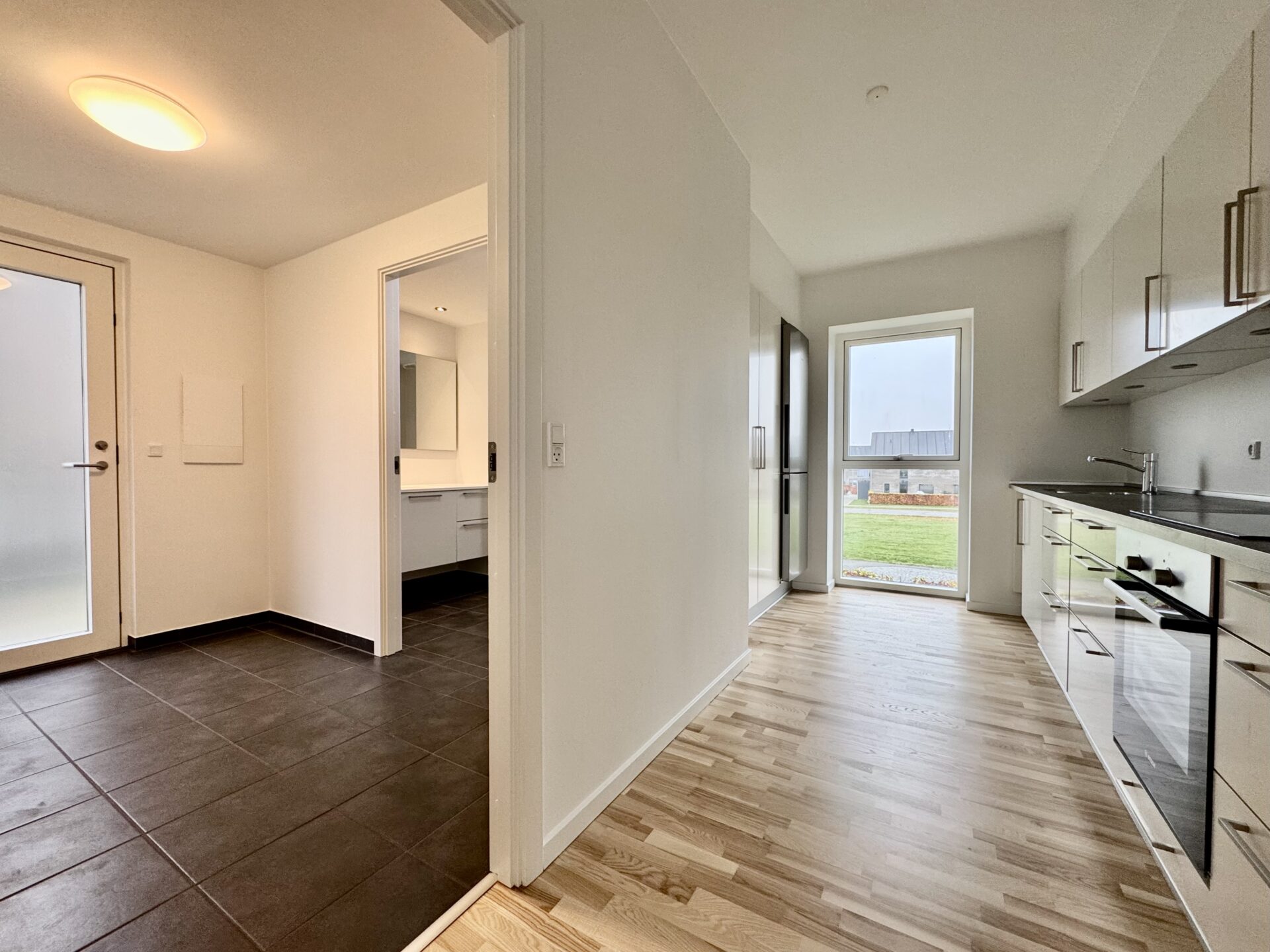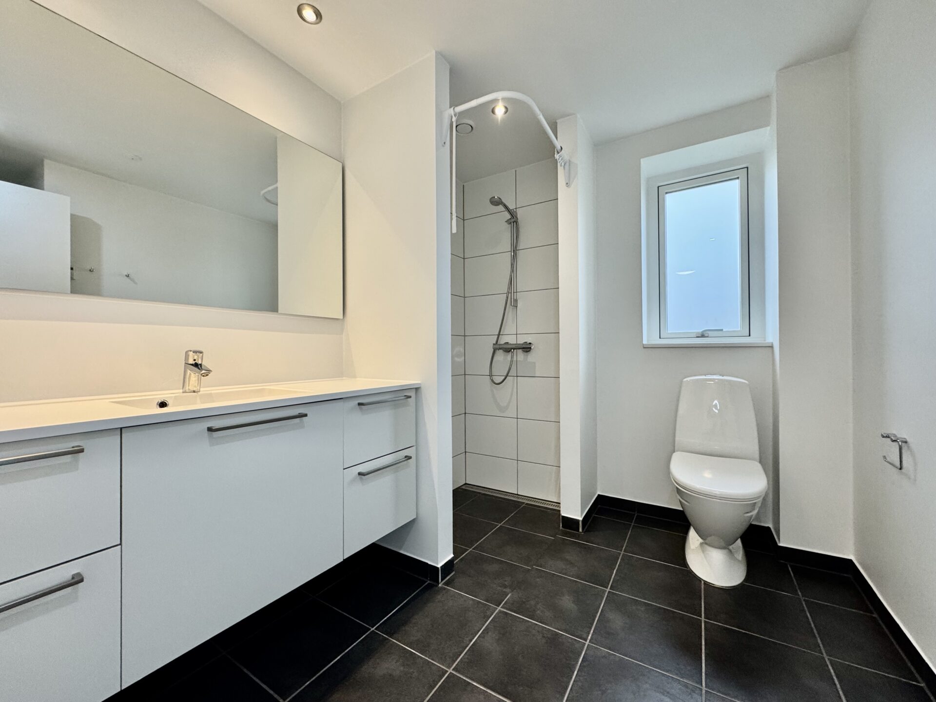 Lejligheden har desuden et nyt og moderne badeværelse med lækre materialer og bruseniche. På badeværelset er der plads til installation af egen vaskemaskine og tørretumbler.