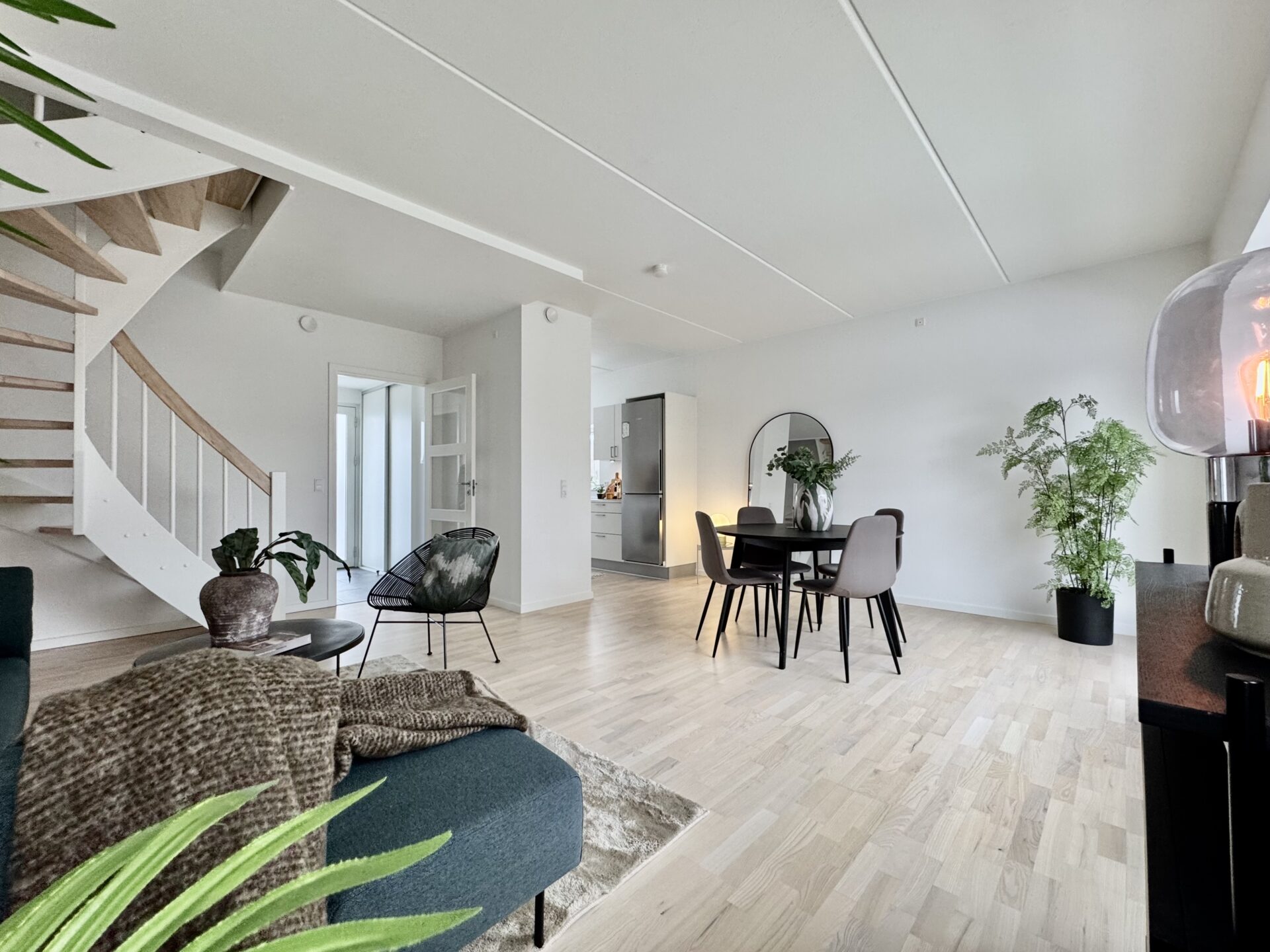 En perfekt bolig til dig, der ønsker god plads, en veldisponeret lejlighed i to plan og en beliggenhed, hvor både natur og bekvemmeligheder er i gåafstand.