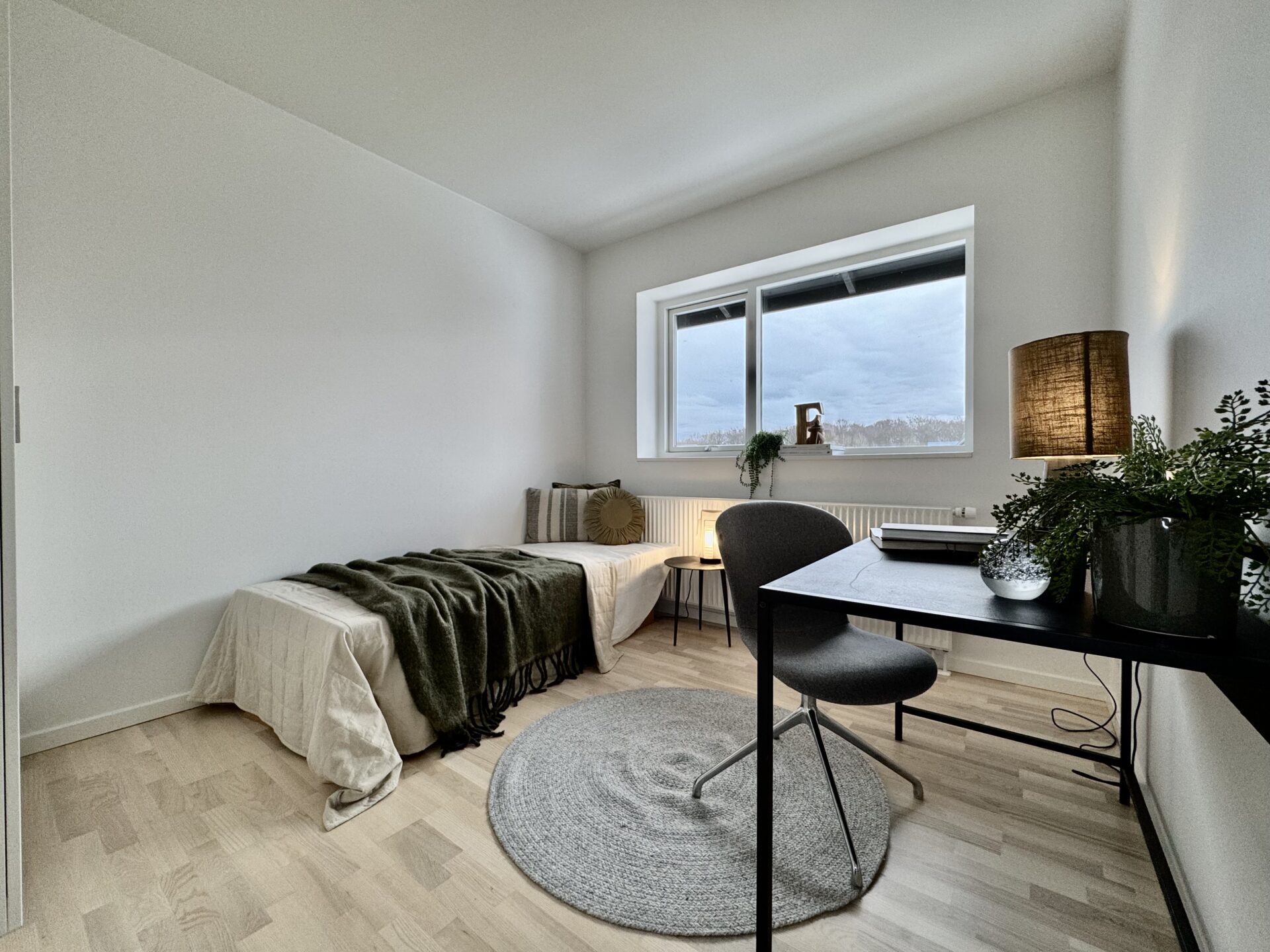 På 2. salen venter tre flotte værelser – alle med faste skabe og gode indretningsmuligheder. Herudover er der endnu et moderne og stilfuldt badeværelse, med plads til egen vaskesøjle.