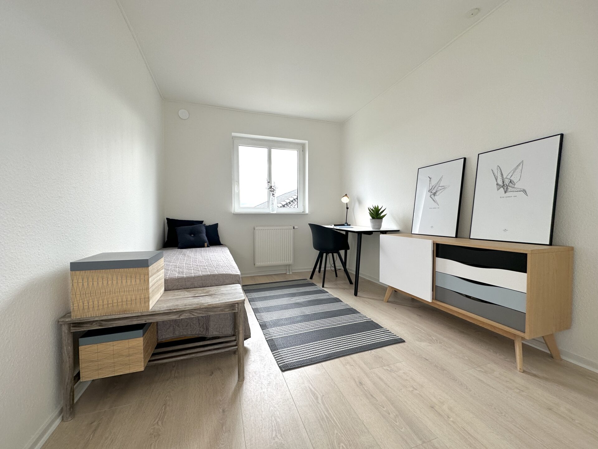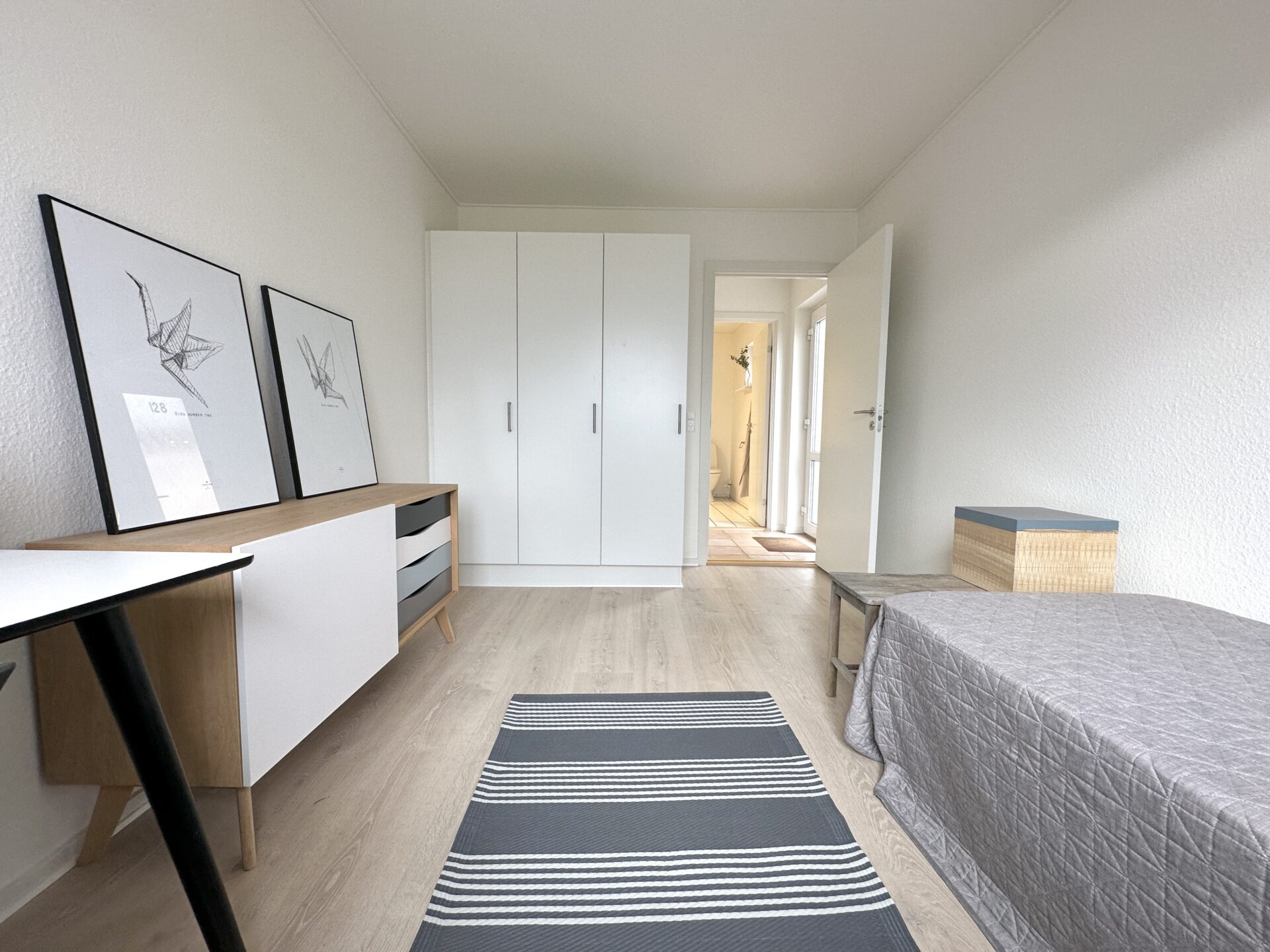 Du får to gode værelser med masser af skabsplads. Badeværelset er lyst med bruseniche og plads til installation af egen vaske- og tørremaskine.